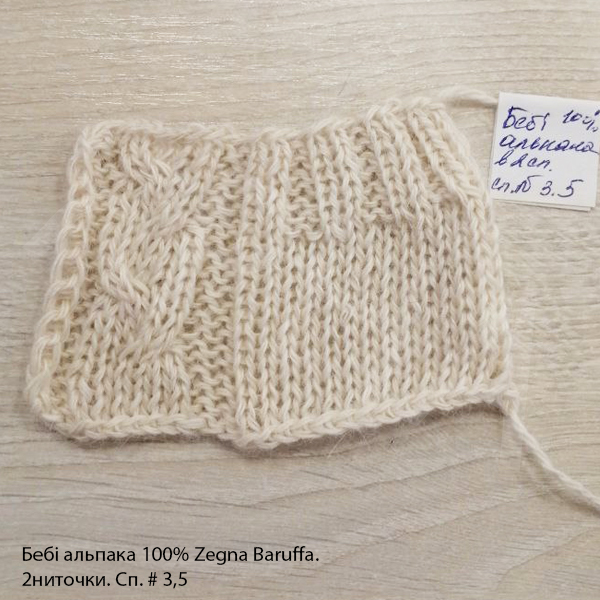 Альпака супер файн 100% Zegna Baruffa - пряжа від відомого бренда, чудова якість, нитка м'яка і після прання випускає альпачий пух, ровниця, добре складається, підходить для ручного та машинного в'язання. Наш зразок зв'язан у 2 ниточки спиці 3,5