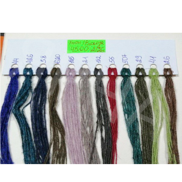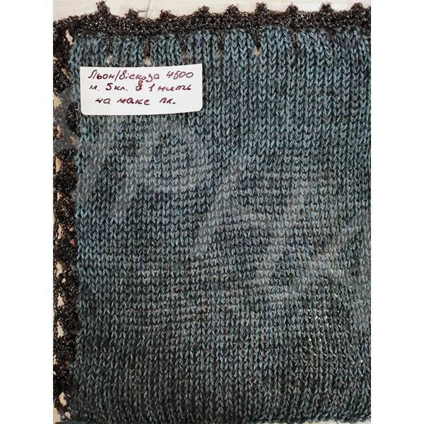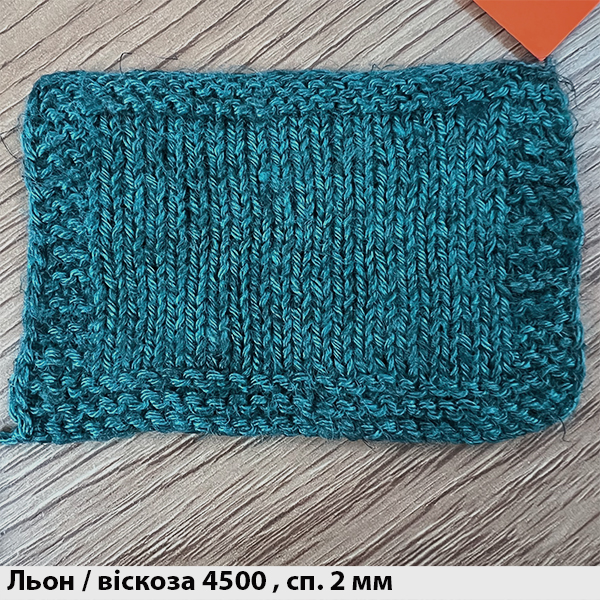 Льон/віскоза 4500 конус гарна льняна пряжа, м'яка та єластична за рахунок віскози, має легкий блиск, приємна на дотик. Підходить для ручної та машинної в'язки, як в одну нитку, так і в декілька складань. При складанні в дві нитки можна обрати спиці 2-2.5мм
