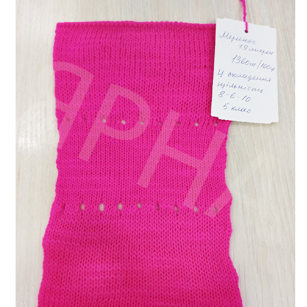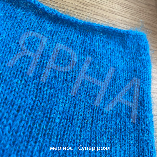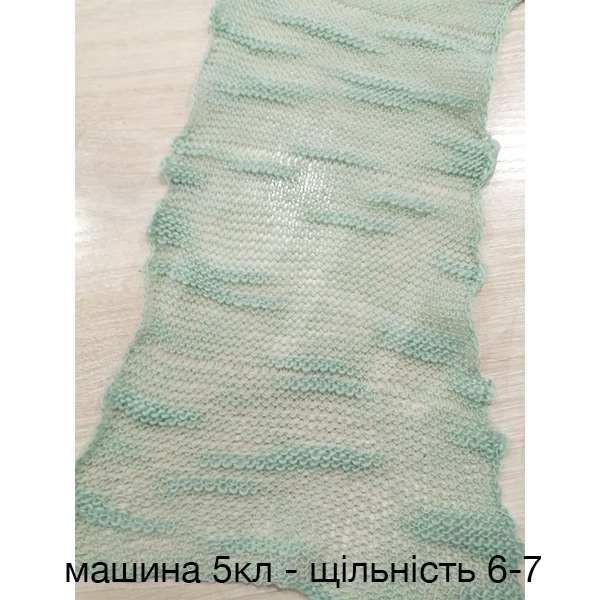 Цікава новинка найвищої якості - меринос 19 мікрон з неймовірно красивою кольоровою гамою (модні кольори сезону 2023-2024 років. Це не помилка, модні кольори наступного сезону вже визначені міжнародним інститутом Пантон (Pantonе). Пряжа дуже м'яка, в полотні з'являється пушок підходить для ніжної та чутливої шкіри, пряжа відмінно складається та підходить для в'язання машиною та руками. Звертаємо вашу увагу на особливу фактуру нитки – фламме, зроблена так: 1,2 м нить-основа 2/26, а потім потовщення впродовж 14 см. Спиці підбираемо по розміру потовщення, дивиться наш зразок жовтого кольору, вязано спицями 2,5 в одну нитку. Полотно цікаве, фактрурне, легке, має вишуканий пушок, полотно схоже на кашемирове. Цоя пряжа для виготовлення невагомих палантинів, светриків-павутинок, так на розмір 44-46 оверсайз в одну нитку, приблизно, потрібно 100-150 грам. Зразок кольору тіфані зроблен на мамашині 5 класу щільність 6-7