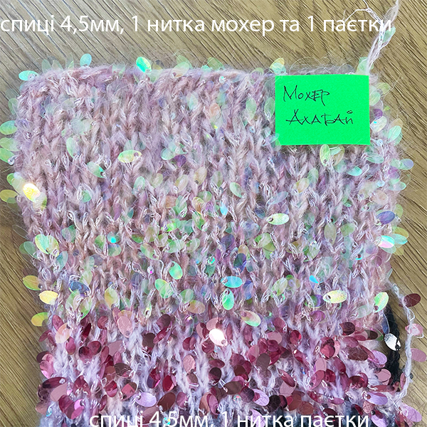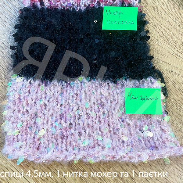 Мохер 250-300г; Паєтки Краплі - 150г