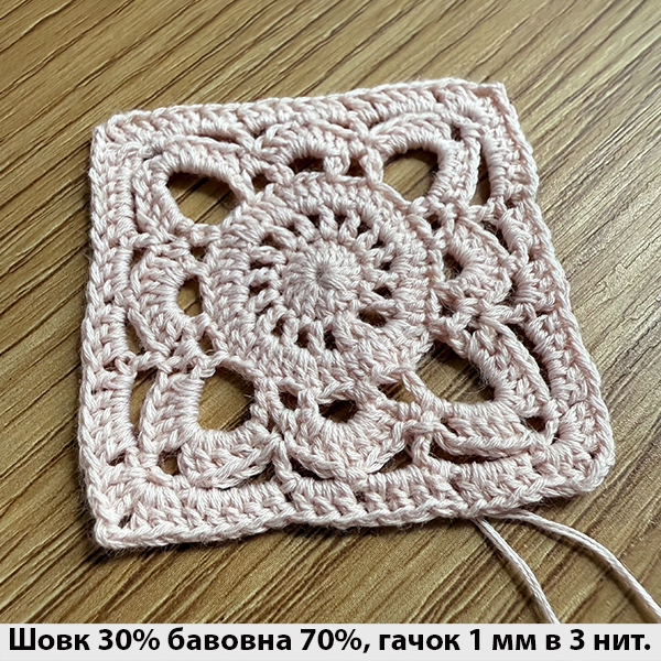 дуже тонка нитка, має матову структуру з ніжним мерехтінням шовку. Добре складається, підійде для ручного та машинного в'язання. Поєднання шовку та бавовни у складі урівноважує зв'язане полотно.