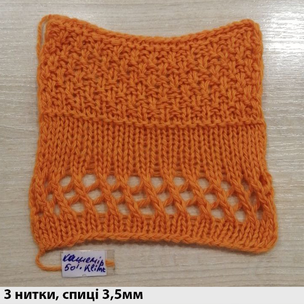 Рекомендований розмір спиць: у 4 нитки 2,0-2,5 мм;
