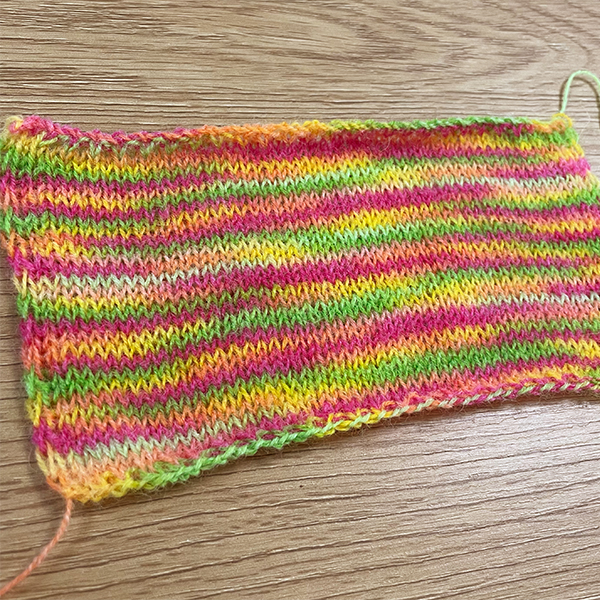 Меринос 70% принт Rosina 2*2/28 - пряжа секційного фарбування з короткими контрастними секціями. Малюнок викладається невеличкими горизонтальними смужками. У складі пряжі 70% кардної вовни, що забезпечує тепло і комфорт. Полотно на дотик сухе і доволі м'яке,