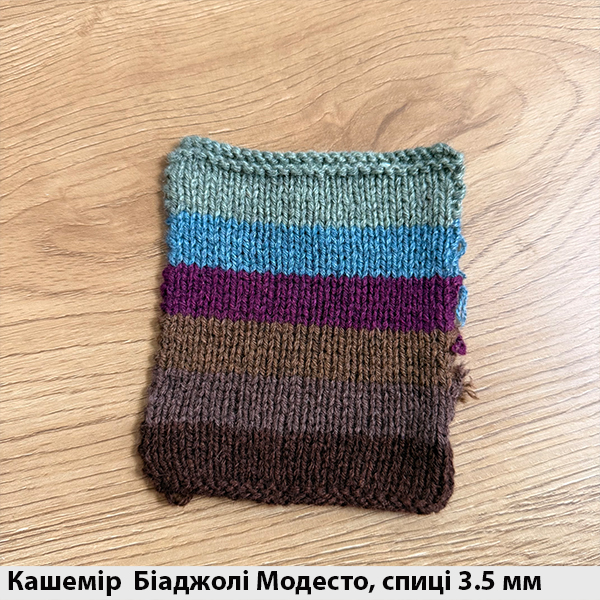 Кашемір 30% з шовком Бьяджоли Модесто - пряжа, про яку можна мріяти! Ніжність кашеміру і шовку відчувається з першої петельки! М'яка на дотик, ніжна, шовковиста - надихає на створення надзвичайних проектів. Полотно не косить, чудово в'яжеться у 2 - 3 складення, після ВТО випускає делікатний підпушок кашеміру. Підходить як для плечових виробів, так і для аксесуарів. Рекомендація: в 2 складення - спиці 2,5 - 3,0 мм, в 3 складення - 3,5 - 4,5 мм.