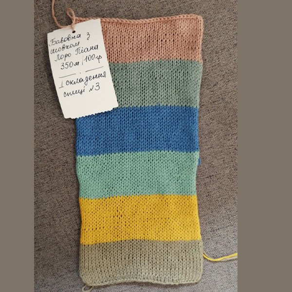Бавовна з шовком Лоро Піана - ідеальний склад для літа. Пряжа м'якенька навіть в конусі. Має приємну шовковисту текстуру , але без блиску. В роботі легка , не розшаровується , не косить. Підходить для вязання як спицями, так і гачком, і на в'язальних машинах. Полотно пластичне, чудово драпірується. Вироби з цього артикулу будуть ніжними і для діток , і для людей з чутливою шкірою.