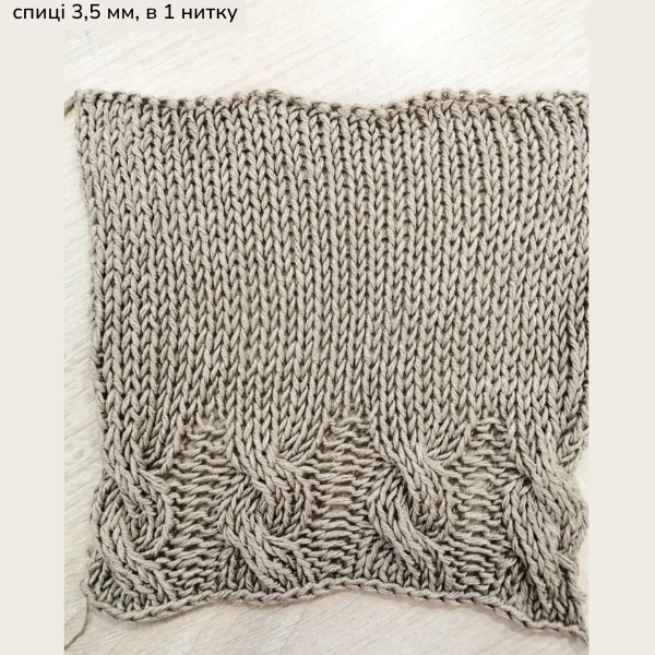 У процесі в'язання нитка скручується, але в готовому вигляді полотно не косить, виглядає акуратно і дорого.