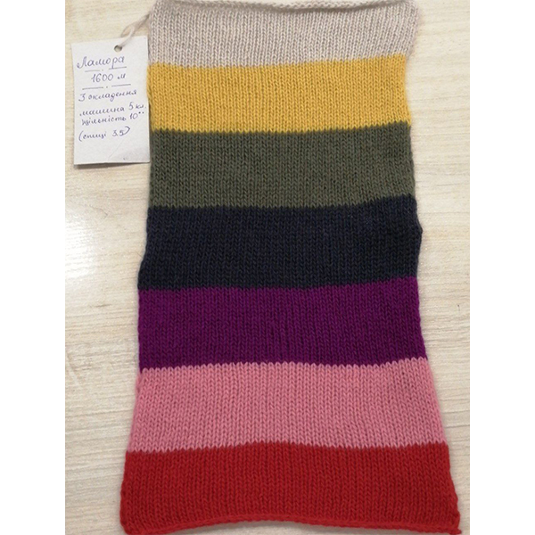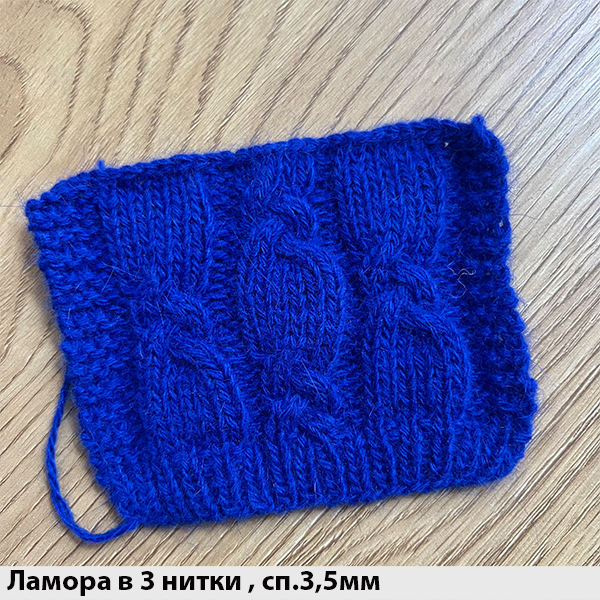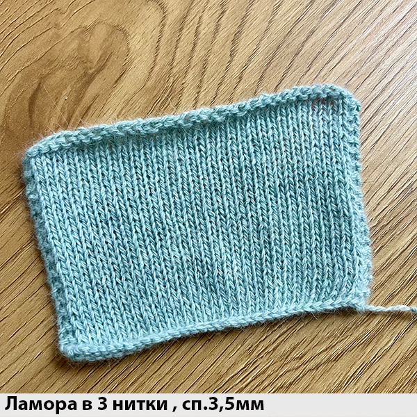 Зразки зв'язані в 3 нитки на спицях 3,5мм середня щільність, резинка на спицях 2,5мм. Пряжа кардова, післе прання необхідно потрусити вироб і потім придати форму виробу, сушити горизонтально