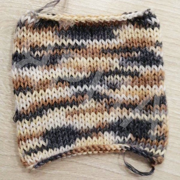 Меринос сегментарного фарбування - склад 70% мериносова шерсть екстра файн і 30% поліамід, який в полотні утворює колірні візерунки. До слова сказати, наявність поліаміду захищає вироби від усадки після багаторазових СОТ. Пряжа дуже м'яка, шовковиста, підійде для в'язання дорослих і дитячих речей. Оригінальний спосіб фарбування не вимагає підбору візерунків, для створення шедевра досить лицьовій гладі.
