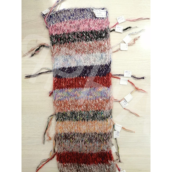 Мохер Фантазія - цікава фасонна пряжа з додаванням мохера — стокове походження. Складається і ниток різної фактури паралельно складених. Пряжа легка, повітряна, не колеться, досить м'яка. Підходить для легких кардиганів, светрів, снудів, шапок