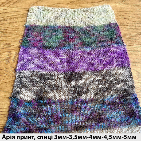 Тактильно ця нитка схожа на мохер з шовком, не колеться, шовковиста, але пушок відрізняється від типового мохерового, він змішаний: мохеровий та "бебі альпачій", соковиті, насичені кольори. Ідеально підходить для светрів павутинок і пов'язаних щільніше в кілька ниток теплих виробів светрів, кардиганів, суконь, шапок, шарфів, бактусів. Метраж кольору вказаний поряд із номером кольору через слеш. Метраж 250 м в одну нитку, метраж 187 в 2 нитки змотано. Дивіться в прикладі светр, в'язали в 2 нитки, спиці 3, витрата 300 грам, розмір 46. Ми в захваті від цієї пряжі, ми її рекомендуємо людям з високою чутливістю, пряжа продається у нас більше 8 років і накопичено достатню кількість позитивних відгуків.
