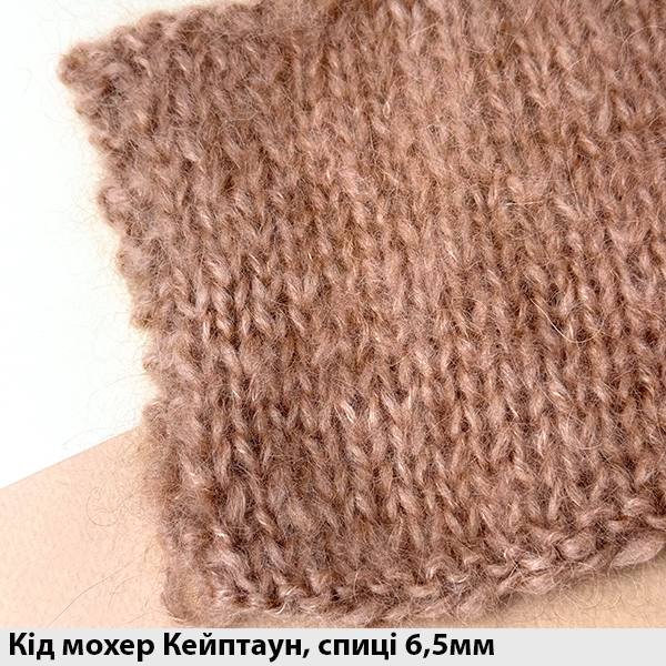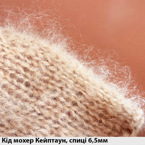 Кід мохер Кейптаун - суміш кід мохеру та акрилу високої якості. Ниточка м'яка, об'ємна і дуже пухнаста. За пару вечорів на спицях 8-10 з 7-8 мотків можна зв'зати стильний светер або кардиган, пальто. Має високий мохеровий стовпчик, зовсім не коле
