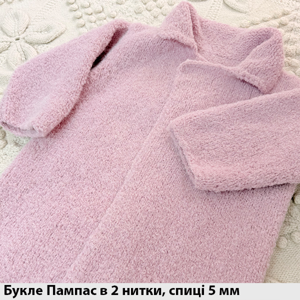 Чудовоі якості, м "яке, не колке для чутливоі шкіри букле Пампас. Витрата: светр або кардиган на розмір С-М-Л 450-500 грамів/9-10 моточків
