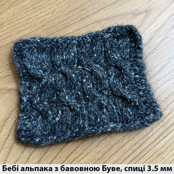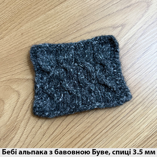Склад: Альпака: 17%; Мериносова Вовна Файн: 13%; Бавовна: 36%; Поліамід: 34%;