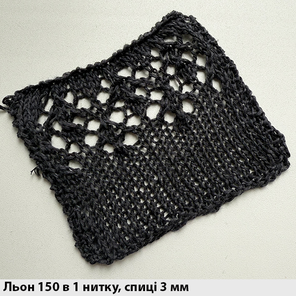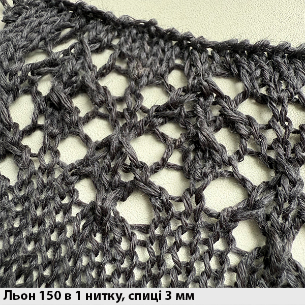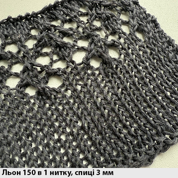 Льон 100% - чудовий артикул для весняно-літнього гардеробу. Нитка рівна, добре складається, в міру м'яка спочатку, але стає після миття все м'якше і м'якше, приємна до тіла. Підходить для літніх та весняних маєчок, футболок, светрів, тунік для дорослих та дітей. На Льон не буває алергії, новачкам буде незвично в'язати вперше льон. За численними розповідями, при першому знайомстві, нитка не схожа в роботі на жодну іншу. Однак згодом Льон стає справжньою любов’ю.