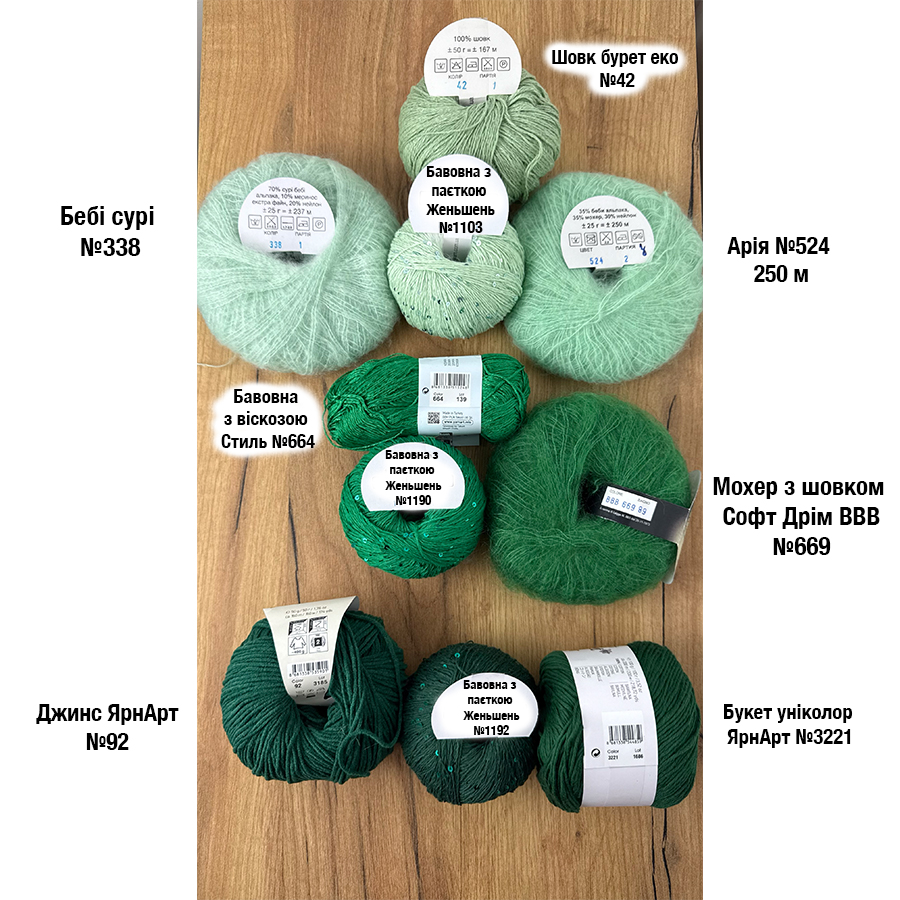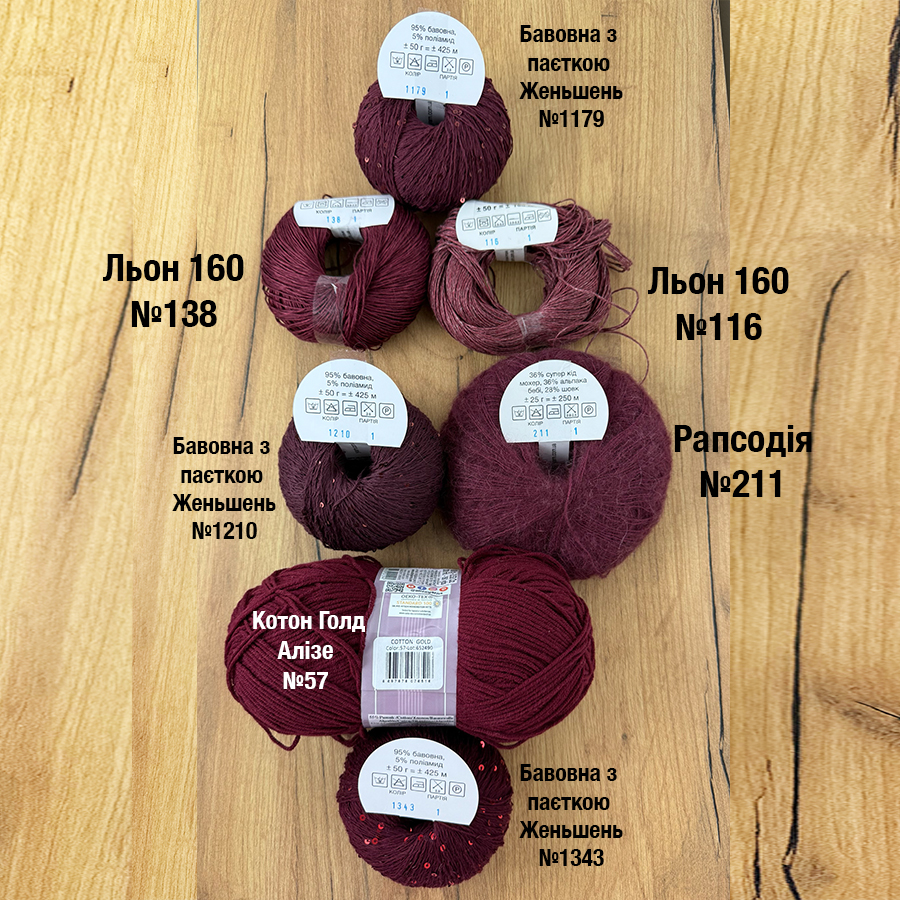 Зверніть будьласка увагу, що колір на малюнку відрізняється від оригінального кольору пряжі.